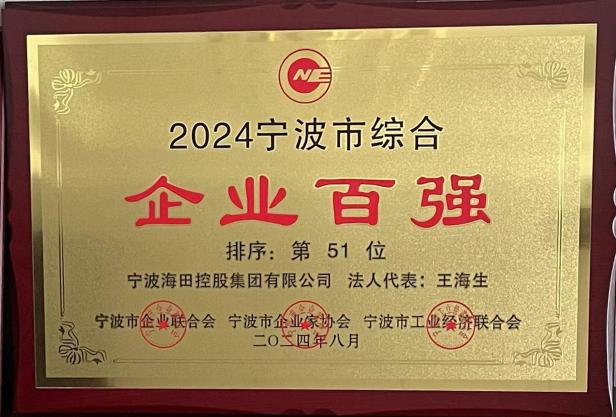 2024市企業(yè)百強榜發(fā)布 寧波海田控股集團榜上有名